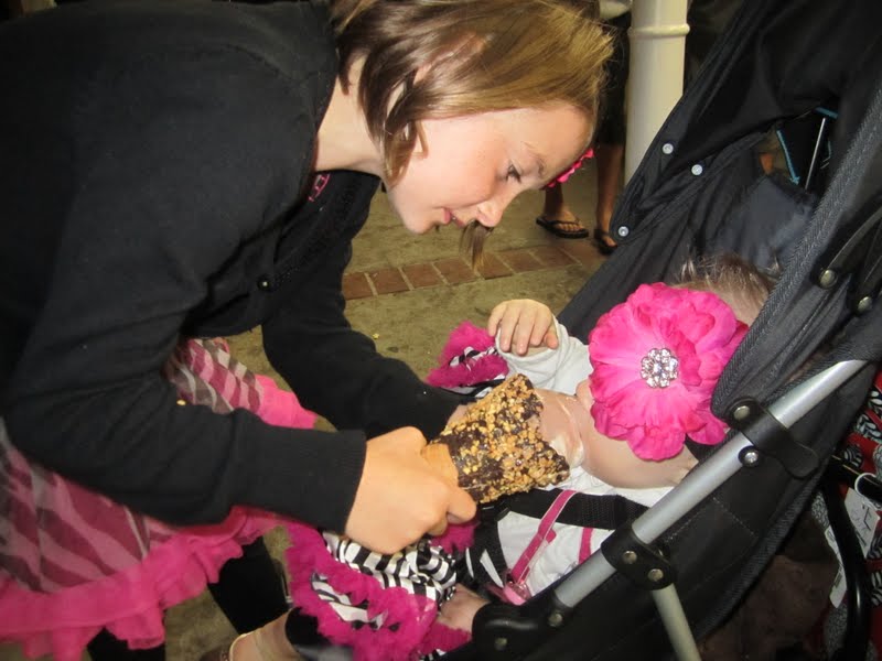 Ellie & Roxy pretending that they were taking their baby sister on a walk to the pier..