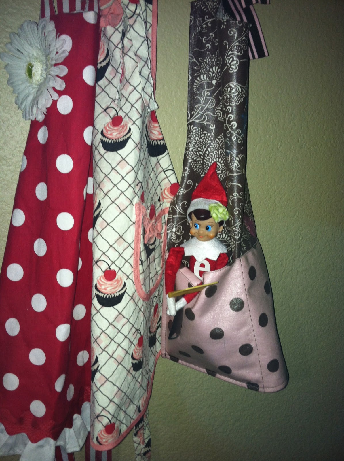 Ellie loved finding her hiding in the apron with a cooking tool.